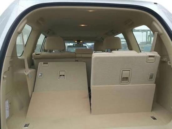 配置: 珍珠白,后挂备胎,天窗,冰箱,7座位,6速波箱,17寸铁轮,全时四驱,ABS+EBD+BA+VSC(车身稳定)+TRC(牵引力控制),2安全气囊,6喇叭,手动座椅调节,驾驶位电动腰部支撑调节,引擎防盗,黑色前格栅,黑色电动外后视镜,黑色门把手,卤素大灯,后雾灯,尾翼,胎压检测
