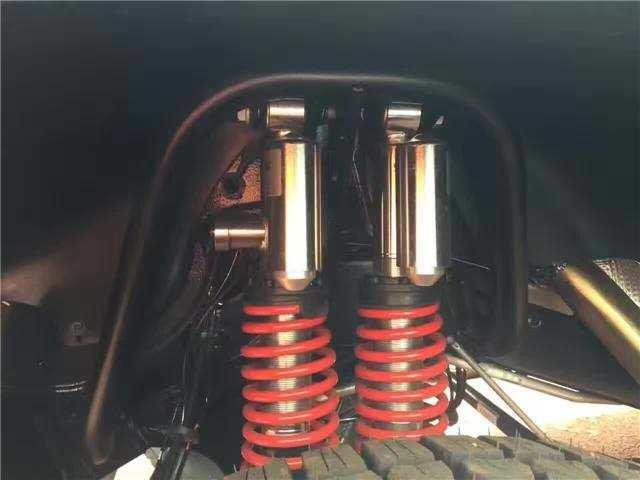 近距离观察下,避震用的是KW品牌,采用双避震设计,行程很长,这是普通G级不具备的。