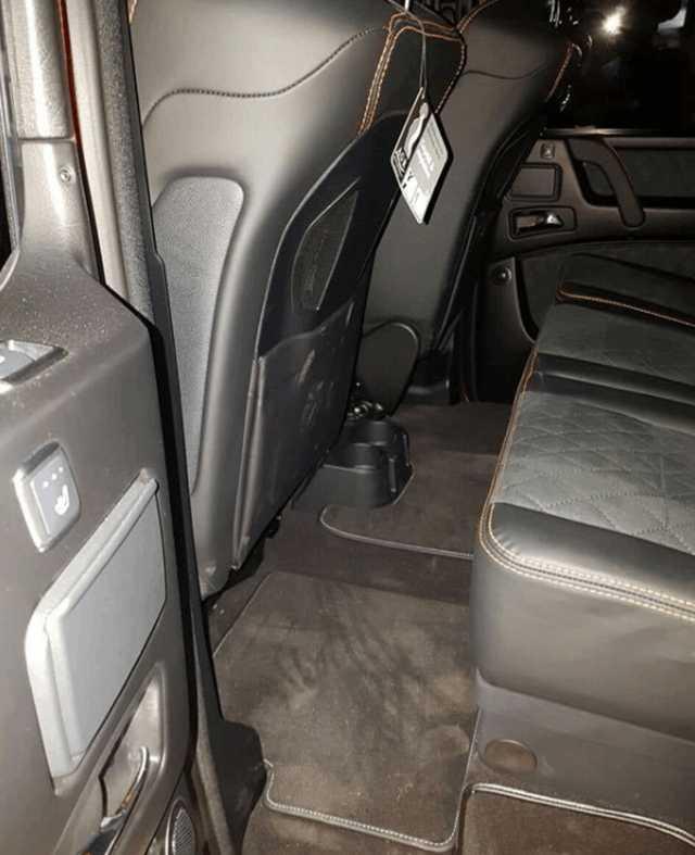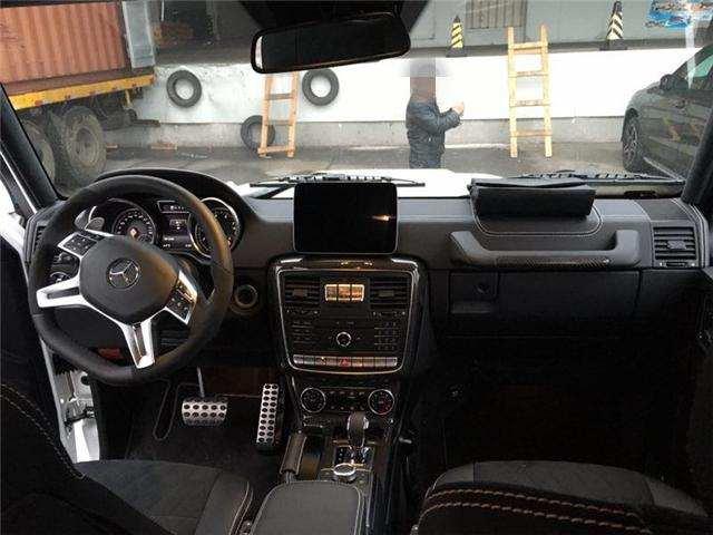 外观虽然看起来大老粗,但内饰却是别有洞天,豪华感非常强,用料为真皮及碳纤维,做工精致,与G63 AMG差不多。四幅式多功能方向盘上下部分为真皮,中间部分为Alcantara面料,用于增加摩擦力,配置了换挡拨片,仪表盘样式倒是比较简单,两圆盘设计,中间液晶屏是车辆信息显示。中控上方是悬浮式的大屏,下是各种按键,包括多媒体控制、空调控制、座椅控制等。挂挡没有采用怀挡而是普通机械挡,档把后方的旋钮是用来调节悬架。
