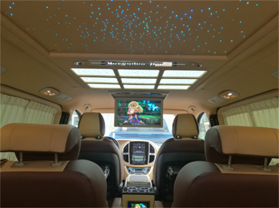 32寸液晶升降电视既保证娱乐性,又可以使前后乘客随意调侃。美国BOSE5.1立体环绕式音响,