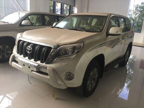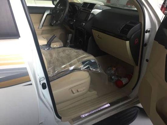 17款霸道2700-VX-(行情价41.5万;优惠价40万)配置:后挂 265/60R18 ,倾斜折叠方向盘,真皮方向盘,电动方向盘,尾翼,电动车窗,LED日间行车灯,彩色折叠后视镜,蓝牙车载电话,定速巡航,车辆稳定性控制,牵引力控制,LED大灯,无线车门锁,后4电眼,后雾灯,双区自动空调,布艺座椅,引擎防盗,镀铬外饰,9气,冰箱,前排电座,大灯清洗,炫彩仪表盘,多功能方向盘,6扬声器,自动大灯校准,拖勾。