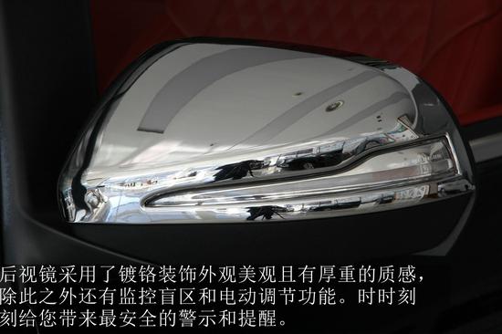 镀铬装饰的后视镜有一种与生俱来的质感,带有监控盲区和电动调节功能。