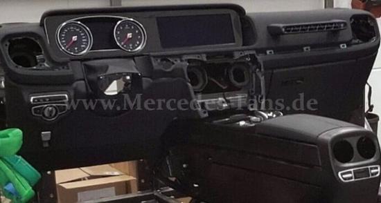 奔驰全新一代G级将继续采用方盒子造型,前脸格栅为镂空造型,两侧的圆形大灯看上去炯炯有神。此外,全新G级的前保险杠也采用了网状格栅造型,中央安装有雷达等。