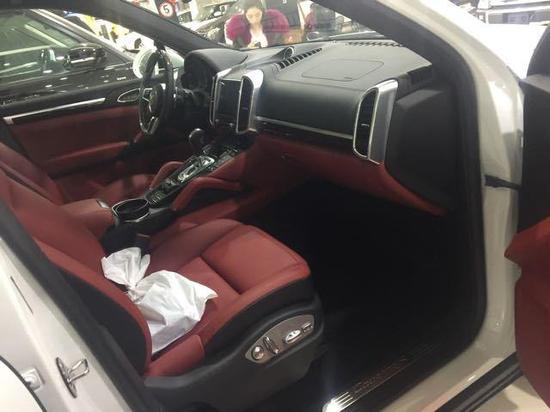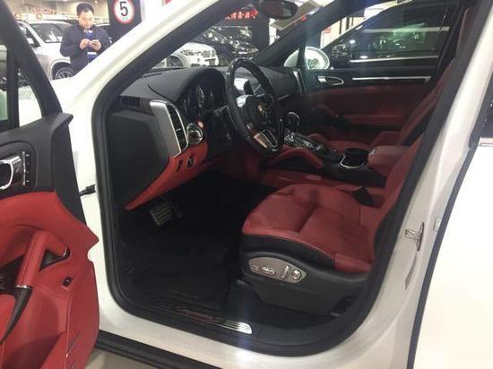 17款进口保时捷卡宴 (配置|询价)配置:19寸轮毂、电吸门、暗影胡桃木方向盘、高级真皮红黑双色座椅、车道偏离辅助、运动功能包(底盘5段升降、空气悬挂、运动尾管、sport chrono组件:模拟和数字计时器、中控台运动+按键、更加运动的油门响应)、高级附加包(智能卡、LED头灯、并道辅助、导航、前后座椅加热、倒影、电眼、座椅14向调节、前座椅通风、方向盘加热、舒适照明、二排电动遮阳帘)