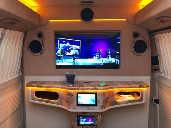 大众T6凯路威带卫星领受功效的奢华32寸LED大屏、SONY蓝光DVD播放器,围绕车身的5.1声道BOSE高品格音响体系组合成为了这款大众T6房车的根基文娱化架构。大众T6凯路威改装版本在左侧A柱处安装有前后舱通话系统,方便后舱的贵宾随时与司机进行沟通。同时,大众T6凯路威的前门外侧都设计有二级踏板,因为高腰线和大轮胎导致车身底盘较高,这样就便利于车内乘客的进出,特别是对于女性乘客来说,这是一个人性化的设计。后仓加装的航空座椅、沙发床,随心所欲,随座随躺;规划酒吧台更显层次,软包的顶棚及侧板舒适性极强,上下推拉的百页窗布,为您供应一个更完美的隐私空间。