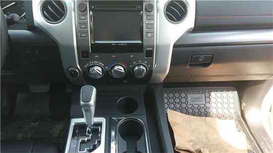 2017款丰田坦途的内饰做工十分精致,真皮座椅、桃木的方向盘、动感仪表盘,在简约的同时,透露着稳重与典雅的气息。丰田坦途5700仪表盘几乎颠覆了之前的全部设计,造型极为新颖。换挡杆造型没有变化,中央扶手箱的凹槽可以存放手机等杂物。