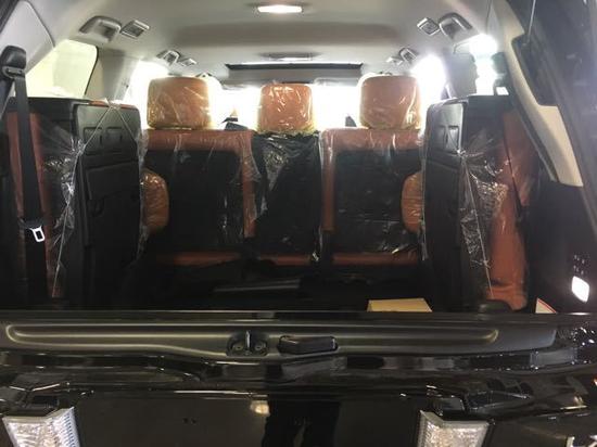 空间方面:2017款雷克萨斯LX570带有折痕的非洲玫瑰木饰板也为LX570更添几分立体的线条,几何美学的多功能显示仪表板与外围的时速表及转速表内围绕着一层蓝色冷光,更具时尚科技感,内部的四个显示表呈现矩形排列,将多功能信息显示面板围绕在中间。全车八座Semi-Aniline顶级皮椅,带来了更加豪华舒适的乘坐质量。质感细腻触手温和,兼具优异的支撑性还有包覆感,使驾驶者与乘客宛若处在量身打造的豪华住宅内般舒适。而LX570独到座椅设计,使第二排座椅只需要轻松扳动拉杆就能够用一只手轻松收折,第三排两段式电动收折座椅,让车主弹指间完成多样化的车内空间配置。