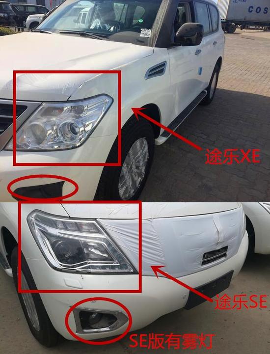 那么两者的差异呢?途乐4.0XE版参考市场售价为50.2-50.8万之间,途乐4.0SE版参考市场售价55-56万之间,而SE8寸屏幕的要贵五千元左右,SE选装BOSE音响的市场售价57.5-57.8万之间。这是价格差异,下面说一下配置差别,首选在外观上看,前面差了氙灯,LED日间行车灯,还有前雾灯,现在这几项低配版都可以升级!