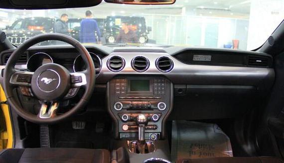 内饰部分,新一代野马延续了美式传统简单粗暴的内饰设计,三幅式方向盘标配了换挡拨片,中控台的中央配备了8寸触控显示屏,并集成了福特家族SYNC车载多媒体娱乐通讯系统,还能显示出倒车影像和控制前排座椅加热/通风的功能,同时造型富有美系文化的空调出风口和灵感来自飞机驾驶舱的金属拨键更是提升了整车的档次感。