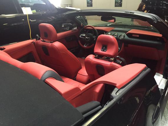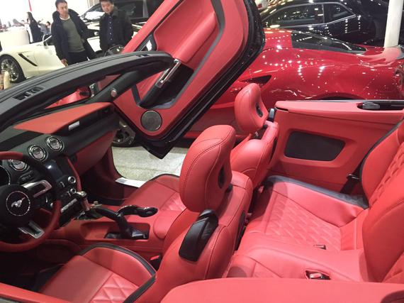 内饰方面:2017款福特野马内饰上主要升级的地方其实只有真皮座椅,其它很多内饰板用的还是硬塑料。2017款福特野马支持MyFord Touch功能的SYNC车载多媒体通讯娱乐系统,可通过中控台上的触控屏进行操作,科技感得到了进一步提升。