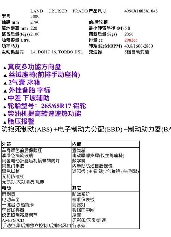 柴油发动机3.0 D4D有2款:D4D 1KD-FTV涡轮增压127KW/3400,410NM/1600-2800 (普通中压涡轮增压型噪音稍大)。