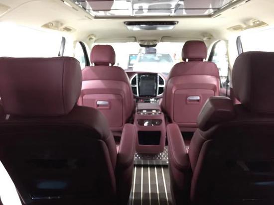 配置:1。整车原装进口2.2.0T排量手自一体3.17寸铝合金轮毂4。双侧电动门5。铝合金迎宾踏板6。全车身镀铬套件7。车顶行李架8。多功能方向盘9。带换挡拨片 定速巡航10。雀眼枫木地板11。超大屏幕液晶中控屏12。车载冰箱13。天窗14。通风加热按摩航空座椅15。前排座椅可180°旋转16。后排座椅可放平成床17。迈巴赫九宫格顶灯18。多功能娱乐桌19前排隐藏式桌板20。全车真皮包裹
