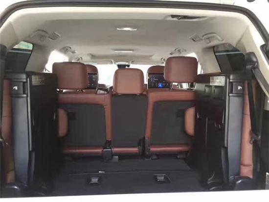 2018款丰田兰德酷路泽4000_(改款六速变速箱 流水灯)配置_8座,6速变速箱 流水灯 17寸合金轮毂, 外挂备胎,8气囊,天窗,电动后视镜,高位刹车灯,真皮桃木多功能方向盘,织物座椅,主驾驶电动座椅,智能卡,迎宾灯,定速巡航,冰箱,LED大灯,后雾灯,胎压监测,脱钩,桃木内饰,流水灯,中东版酷路泽4000的车身尺寸:长/宽/高/4951/1971/1890 (mm),轴距:2850