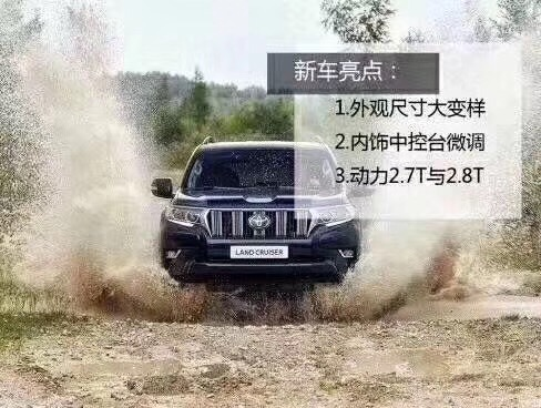 2018款中东版丰田霸道普拉多2700大灯采取灯壳外凸筹划,经由过程更加隆起的轮眉出现出很是富丽的侧面造型。轮眉和轮胎之间的伟大空地空闲也彰显出2018款丰田霸道2700的攀爬能力。霸道2700堪称越野之王,拥有绝对相信的越野机能。多款配置色彩可选。紧张区分为前中网变革,底盘照旧属于全时四驱模式,加大油箱(150L)是一个亮点。