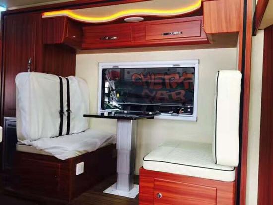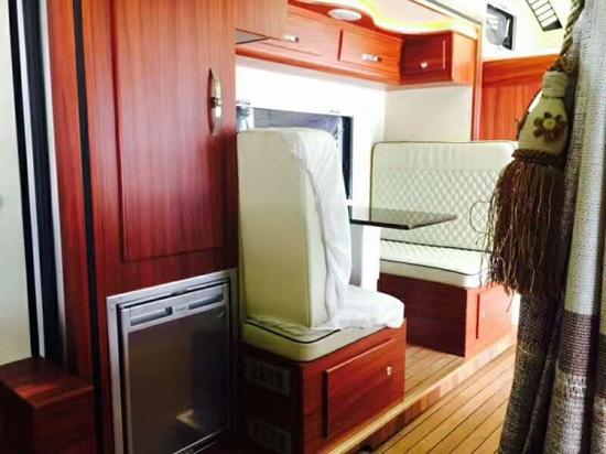 车内烹饪厨房带吸油烟系统、多功能电磁炉、微波炉;车外还设置了外置炉灶,抽拉式设计,可以便利地打造出一桌丰盛大餐。