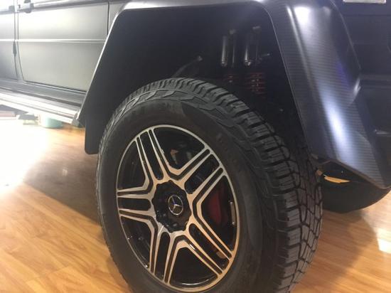 配置:离地距离 450mm、涉水能力 1米、轮胎间距 1.744mm、3种驱动模式、22寸轮毂、每个轮胎带有两个减震器及两个悬架弹簧