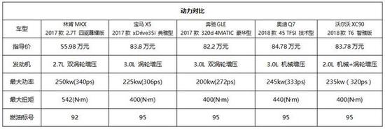 >>>>驾控:动力澎湃,但轻松自在动力方面,试驾的车型搭载了一台2.7LEco-BoostV6双涡轮增压直喷发动机,最大功率250kW(340PS)/5250rpm,最大扭矩542N·m/3000rpm,性能抢眼,我们从数据对比可见,这台发动机相比宝马X5、奥迪Q7、奔驰GLE、沃尔沃XC90 (配置|询价)等同级别的车型要更加强劲,而且竞品车型的售价都比林肯MKX高出不少,如果放在同价位的中型豪华SUV,如奔驰GLC、奥迪Q5等这些上,林肯MKX在动力这方面的优势就更为明显了。