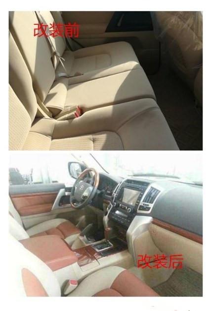 在座椅方面,低配丐版是五座座椅,其他配置是八座座椅,中东版酷路泽座椅都是丝绒座椅,下图改装真皮座椅对比效果!