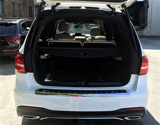 2018款奔驰GLS450第三排座椅可同时乘坐两个人,空间不算小,正常身材的男士乘坐也不会觉得拥挤。后备箱载物空间非常给力,当载物很多的时候,可以通过收折按键放倒第三排座椅,形成宽大的空间。全尺寸备胎就藏在饰板下面,工具也非常齐全。