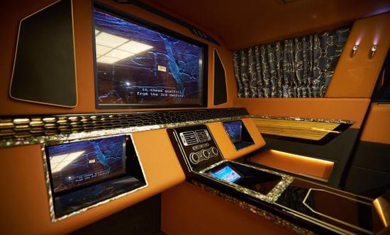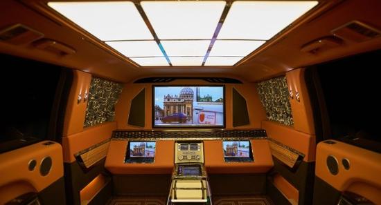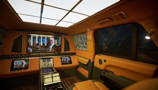 进入路虎揽胜皇家一号的车内,其奢华程度可与超豪华商务车型相媲美,全车天花板均由 顶级欧洲小牛皮包裹,纯手工精路虎揽胜心制作而成的高级地毯,尽显精致贵气。