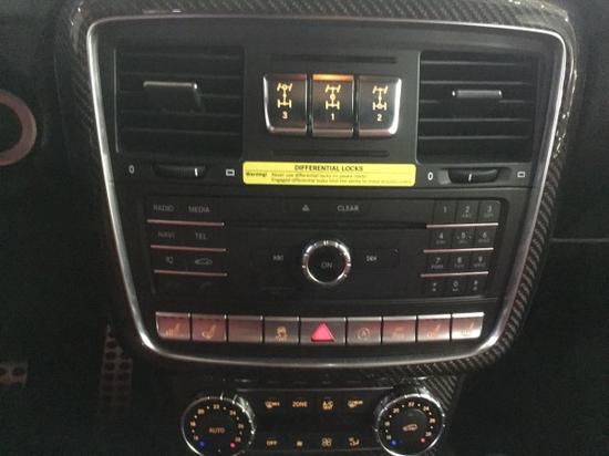 17款奔驰G63AMG标配新式仪表盘和最先进的COMAND APS NTG 4.5驾驶室管理和数据系统。奔驰G63AMG还配备了带彩色TFT显示屏的AMG仪表盘、AMG主菜单和单独的挡位显示器以及采用白色照明的AMG门槛。座椅是按照原车造型改装,中间进行打孔设计,是为了更好的通风散热。金色缝线与金色绣标非常很惹人注目。
