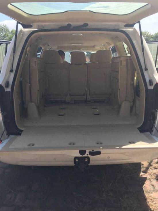 17款酷路泽5700EX.R配置:12气囊 7座 胎压监测 新款行李架 气泵 儒行模式 8速变速箱 天窗 气泵 氙灯 LED灯 雾灯 电眼 拖钩 18轮 航空脚踏 行李架 多路况调节模式 前中网镀铬 桃木方向盘 桃木内饰 多功能方向盘 定速巡航 电动折叠后视镜 智能卡 一键式启动 主驾驶电动座椅 大屏 底挂备胎 雷达