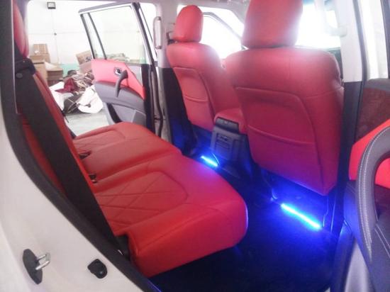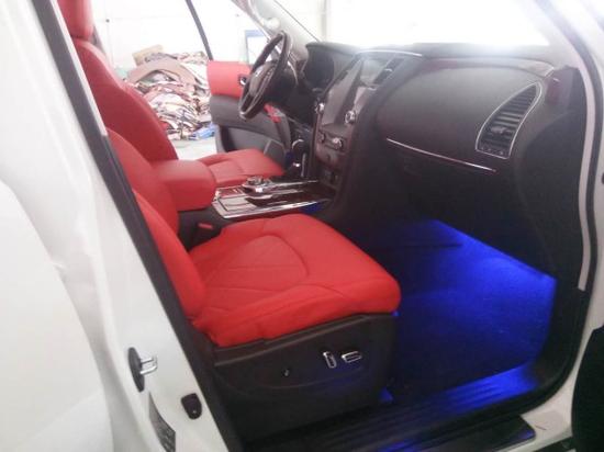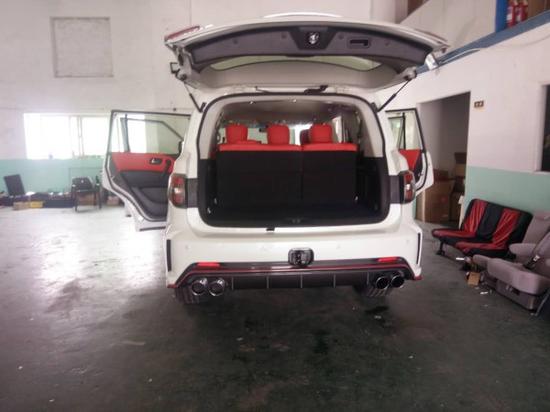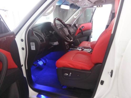 从它的外观个性能来讲,他都不输给酷路泽4000,价格方面比酷路泽要便宜10万元左右,所以他是一款性价比比较高的一款车,在近两年,他的销量直追酷路泽。今天给大家介绍的这款,是后期改装的车型,由日产途乐Y62 XE改装的效果,这款的配置呢,原车没有天窗,当然,天窗是后期改装不了的,后期改装了氙气大灯,LED日间行车灯,前后大包围,20寸轮毂,行李架,雾灯,镀铬套件,拖车钩,真皮座椅,座椅电动调节,通风,加热,迎宾灯,氛围灯,桃木内饰,大屏导航,360环影,原车没有冰箱。这款车的改装费用3万元左右。