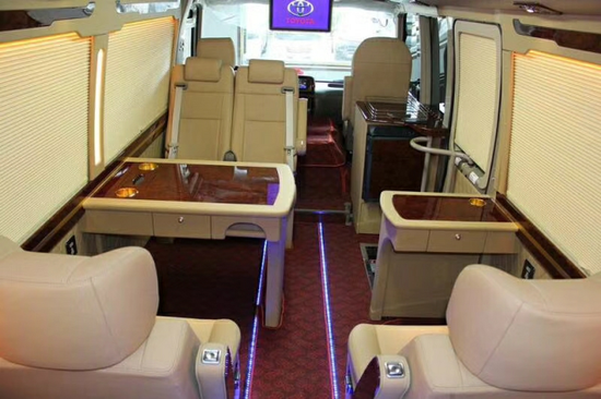 装饰的在华丽也要有这么好的车来衬托他的不平凡,丰田考斯特是所有中巴车中最专业的商务接待房车改装全能车型,近乎原始的坐姿、裸露的米黄金属的高贵车身粗犷的内饰布局都会让你对这辆车另眼相看。全国可分期欢迎咨询。爆改航空座椅接待超有面子。