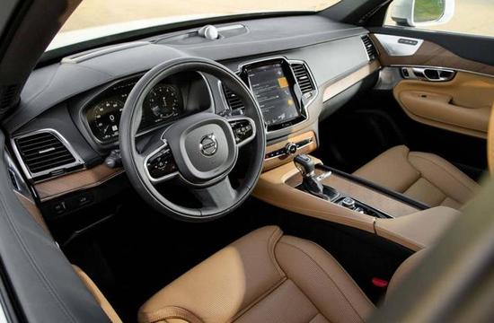 本款XC90内饰为米色Nappa真皮座椅和大面积米色皮革包裹内饰。沃尔沃XC90的一键启动钮是设置在中控挡杆后方位置。