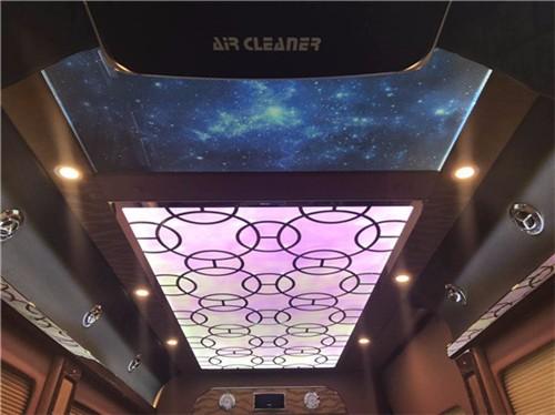 18款奔驰斯宾特云锦版两分式棚顶设计,前部分为中国风铜钱灯,后部分为璀璨星空,全景式顶灯,交相呼应,无与伦比的视觉体验。更有豪华航海石英钟、温度湿度表装饰,让您一切尽在掌控。