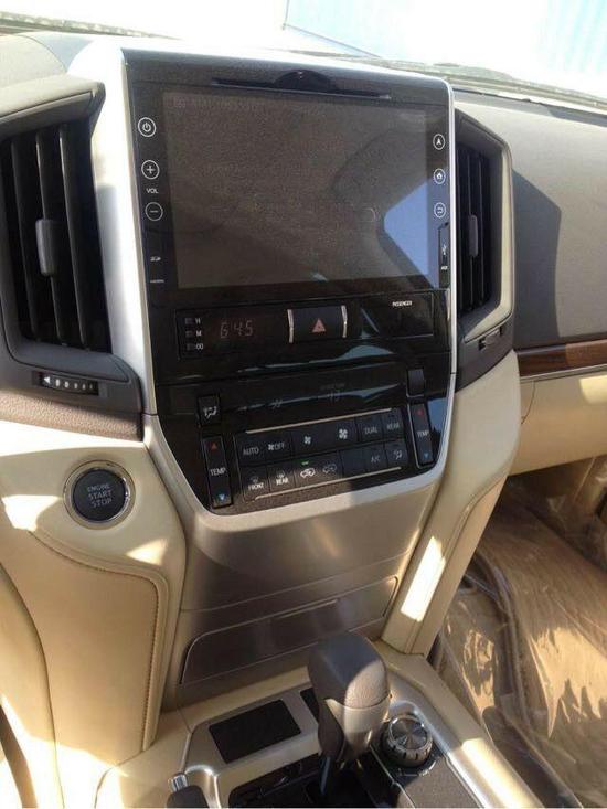 18款丰田酷路泽中东版多媒体控制区内的镀铬装饰则让布局规整的中控台看起来更为体面。材料和做工方面自然更到位。内饰的工艺和配置又一次升级了。除了各处良好手感的软质材料外,在中控台的面板换成与内饰新色系更搭的黑色钢琴烤漆材质,让这个中控台更显光亮。