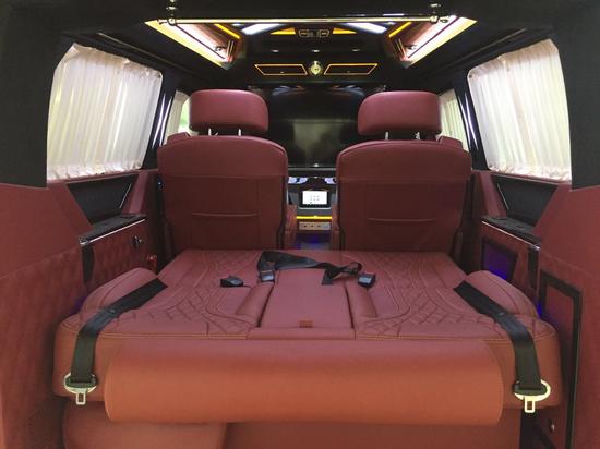 第三排三联座可完全放平成沙发床,豪华的棚顶灯为您衬托不一样的情调。