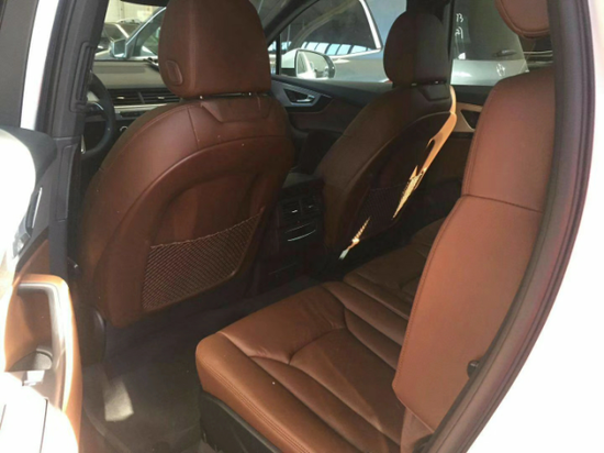 17款奥迪Q7的内饰延续了奥迪一贯的严谨细致,这应该是奥迪内饰的一个发展方向,在材质和做工上豪华精细。奥迪Q7真皮包裹的四辐式方向盘造型饱满,角度以及深度可电动4向可调节,方向盘左侧的控制杆主要控制远近光以及转向灯,其它灯光控制通过驾驶员左侧的旋钮控制。17款奥迪Q7可以加装第三排座椅,后两排五个座椅均可独立放倒。一共有28种不同的座椅放倒方式,可谓是“百变金刚”,如果后两排座椅完全放倒,那 Q7将会获得超过2000L的储物空间。门槛有金属材质保护板后门开度也较大,第二排车门以及尾门玻璃为暗色隔热玻璃,标配有手动遮阳帘。