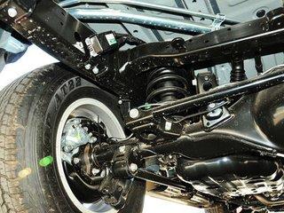在悬架方面,FJ酷路泽前悬采用的是双叉臂式独立悬架,为越野提供一定的驾驶舒适性;后悬采用了整体桥加四连杆形式的非独立悬架,保证在任何时候后轮都能紧贴地面,以对付崎岖不平的山石路。FJ酷路泽的轴距只有2690mm,这使得它在通过复杂路面时有了先天的优势,而且精致的前后悬设计带来了34度的接近角和31度的离去角,以及245mm的离地间隙。