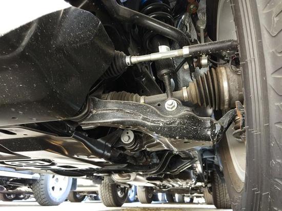 比较明显的区别就是,国产版的霸道备胎不再使用“背书包”的方式安装,而是安装在底盘下面;而中东版霸道的备胎依然外挂在背门上。