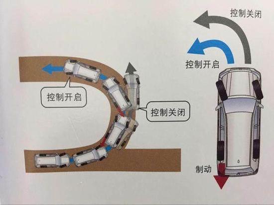 转向驾驶辅助系统:在以低速巡航模式行驶中遇到需要连续操作的急转弯,通过舵角感应器对驾驶者的转向意图作出判断。通过控制后轮内侧的制动油压,提高车辆转向灵活性。此功能可以减少反复转向操作的次数,减轻驾驶者的负担。