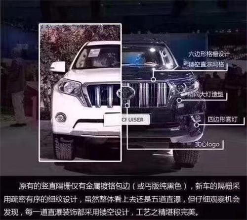 \18款霸道2700中网凸显霸气刚毅,雾灯程四边形比老款圆形雾灯彰显大气。