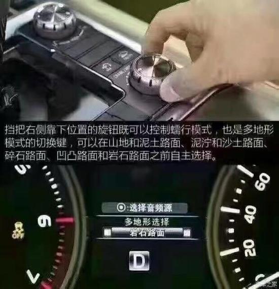 ④:蠕行模式,这个就是17款酷路泽的一个重要的功能了,全称“低速巡航驾驶辅助系统”,俗称“傻瓜越野系统”