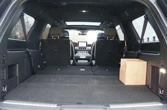 新车采用了2+2+3的座椅布局,第二排采用了两个独立座椅,座椅内侧均配有扶手,舒适度超强。此外,车内还配有影音系统,行车途中可以让乘客观看自己喜欢的电影。此外,18款林肯领航员的车身尺寸超大,长宽高分别达到5672mm*2024mm*1989mm轴距达到了恐怖的3327mm,所以第三排空间非常大,一点都不觉得拥挤。另外,像座椅通风、座椅加热、座椅按摩这种功能就不比多说了,林肯领航员全都能满足。