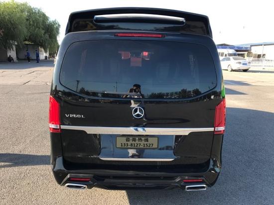 奔驰V260L改装商务车在外观上,V-Class车系在方正的基础线条下,于车头部份融入了诸多新世代奔驰车款的设计特色,其中包含了内崁大型三星厂徽的双栅式水箱护罩设计、搭配全新LED头灯及昼型灯的飞翼式造型灯组,以及与头灯及水箱护罩线条整合的保杆造型