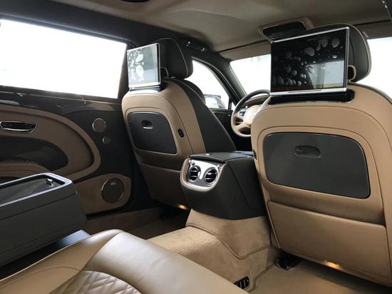豪华的内部设备上,Mulsanne同样搭载有这级别车型中顶级的配置,如蓝牙通讯、SIM读卡器、卫星导航、基于3G网络的MMI人机操作系统等先进技术,还有8英寸触摸屏、内置40G硬盘多媒体系统、标配14扬声器的音响等这些娱乐系统。另外,用户还可以选装20扬声器的Naim音响系统。前排座椅带有12向电动调节功能,配备了四区独立控温自动空调。