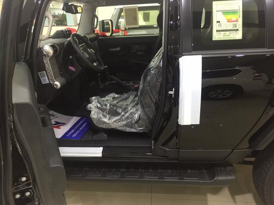 外观方面:17款丰田FJ酷路泽在许多方面继承了FJ40的经典,比如圆形的前大灯,经典的带丰田标志的车前格栅,笔直的挡风玻璃,别具一格的白色圆浑方正的车顶,车身后部的四分之一车窗以及后部宽大的空间。丰田FJ酷路泽4.0新增的氙气大灯、LED日间行车灯、LED尾灯、侧防擦条等配置都将进一步提升其竞争力。在丰田FJ酷路泽4.0尾部的保险杠上设置了深色的踏板,这个踏板承重能力很强,完全可以站上去。