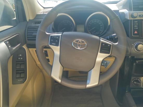 17款丰田霸道2700中东卡塔尔版邓禄普的轮胎和新普拉多配合的简直是天衣无缝,轮胎抓地能力非常强。饱满的四幅方向盘手感不错,用起来绝对舒适,左右两侧装饰部分集成了音响系统和车载电话控制。