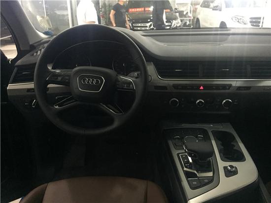 奥迪Q7 (配置|询价)现车配置解析,超值爆惠限时秒杀。2017款奥迪Q7依旧是难以掩盖的霸气。车身侧面高腰线设计很好的将前后融合过渡,而低腰线设计和高腰线配合起来更有层次感,行李架包围着大大的全景天窗设计。