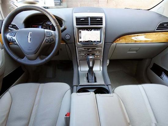 17款林肯MKX无论是三幅式多功能方向盘、别致的仪表盘、MyLincoln Touch系统、触摸式控制面板,林肯MKX给人的感觉都是充满科技感和时尚感,并且整个中控台得布局也是以简约便捷为主,另加上丰富且人性化的配置,既显豪华感又实用。