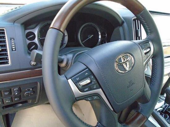 17款丰田酷路泽5700整个操控区域色调为 深色系,仪表盘、方向盘和排挡等位置均配以桃木装 点,尽显豪华质感。不但具有DVD导航,这款车的倒车 影像还可以显示在内后视镜上;中央扶手箱还装备了冷藏 箱,这些都与中规版车型有所不同。17款丰田酷路泽5700内部空间也非常充足,17款丰田酷路泽5700操控台没有过于繁杂的操控按 钮,但却凝结了越野车型在简洁之间将所有功能集结于其中的驾驶乐趣。