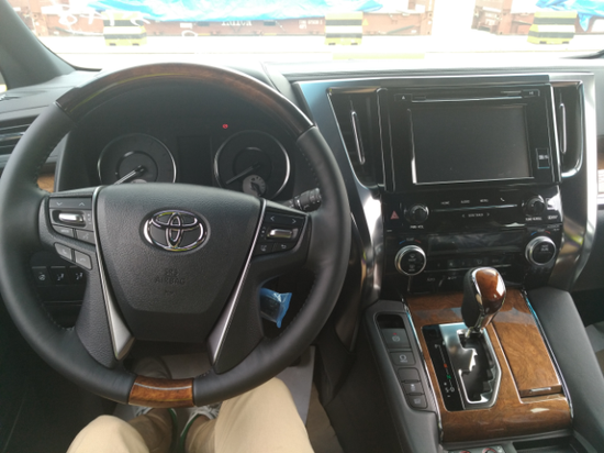 丰田ALPHARD埃尔法的方向盘采用了红色桃木+黑色真皮和银色饰板的点缀,很有档次。其中左侧的按键用于控制车辆的音响及行车电脑系统,右侧为车载电话按键和定速巡航拨杆。在方向盘的左后侧的一堆按键,主要用于控制车辆大灯、车载稳定系统和VSC稳定系统等功能,右后侧为车辆电动门开关及座椅加热功能。