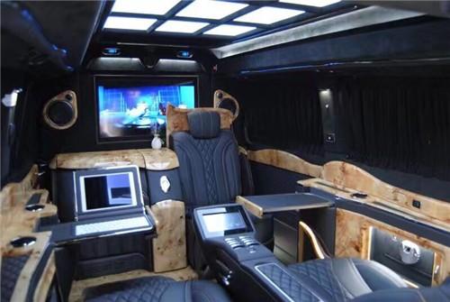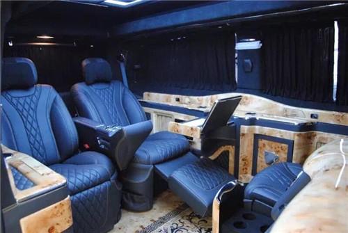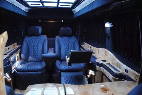 奔驰威霆改装房车注重商务格局,贵宾座完美集成了座椅调节、记忆、通风及加热、两节腿拖等顶级功能配置。前排电动隐藏座椅需要时可一键展开,不用时可一键闭合,为后舱腾出更大的空间。液晶可升降电视可连接车载 wifi 接入互联网。5.1环绕立体声音响无论身处喧嚣都市抑或旷远郊野,殿堂级的音乐享受都将不离左右。奢舒是一种生活态度,让每一项功能的安放都以将车内舒适度最大化为终极目标。
