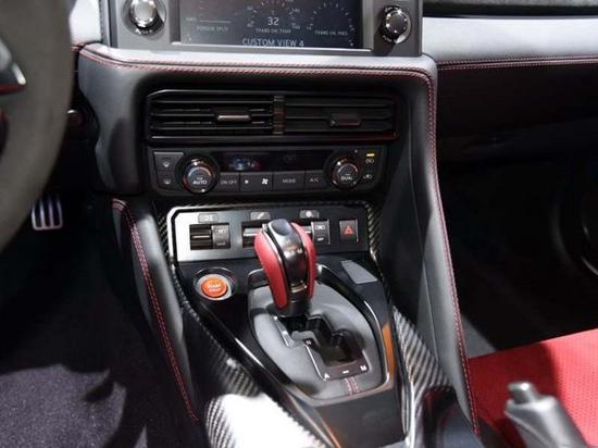 日产GTR的中控面板位于驾驶室正中央并呈一定角度倾斜,方便驾驶员操作,上面集成了空调控制、音响控制以及底盘动态属性控制等等系统的开关。 17款日产GTR加版 个性超跑亲民设计