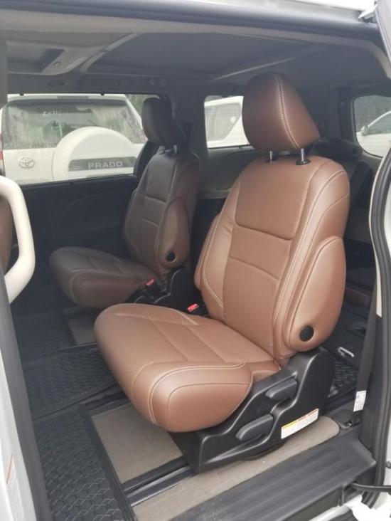 2018款加版丰田塞纳3.5四驱LTD 7座顶配配置:8速,全时四驱 ,7座, 18寸铝合金轮毂,7寸触摸屏,定速巡航,感应雨刷,三区空调,前雾灯,前后雷达,广角倒车影像,JBL音响,双天窗,原厂真皮座椅,前排座椅加热,智能卡,一键启动,主副驾驶电动座椅(主驾驶8项座椅调节带腰部支撑,副驾驶4项座椅调节),驾驶员座椅记忆,多功能方向盘,镀珞门把手,行李架,双侧电动门,电尾门, 二、三排手动遮阳帘,隐私玻璃,电动折叠后视镜带记忆,远光灯辅助,氙气大灯,LED灯,吸顶DVD,并道辅助。